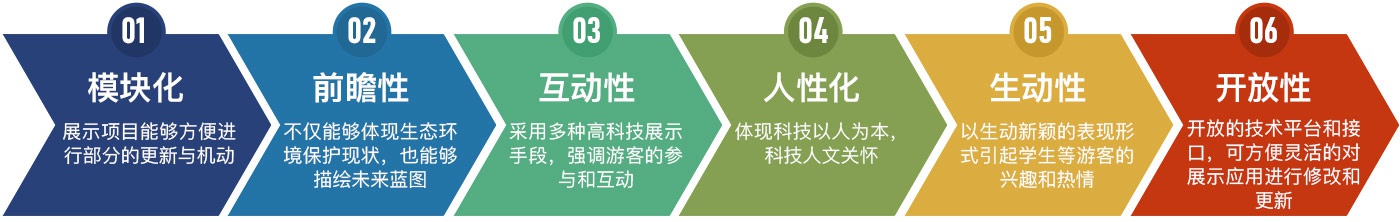 室内环保科普展厅面积为750平方米,以科普环保知识为目的,以常设展览教育基地、影视放映等为主要功能,主要从介绍世界和国内重大环保污染事件开始,普及热点和常见环保知识,教育学生环保从小做起,从身边做起,同时呼吁全民参与低碳减排、植树造林等爱护环境的活动,共建社会美好生态环境。整个展厅分为7部分,分别为“序厅”、“国内外今年主要污染事件”、“心系环保”、“产学互动”、“领导关怀”、“走进怡杉”、“怡杉智慧生态平台(影视报告厅)”。